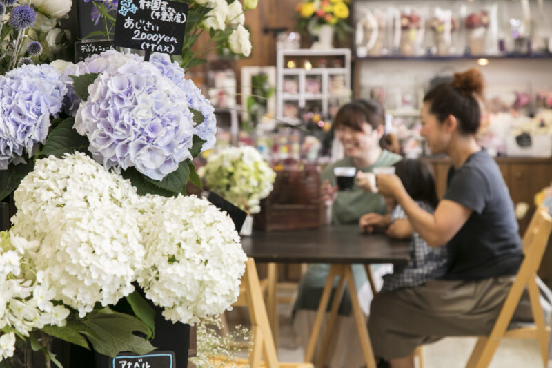 ゆったりと時が流れるお花屋さんの一角で、思い思いの時間をお過ごしください。